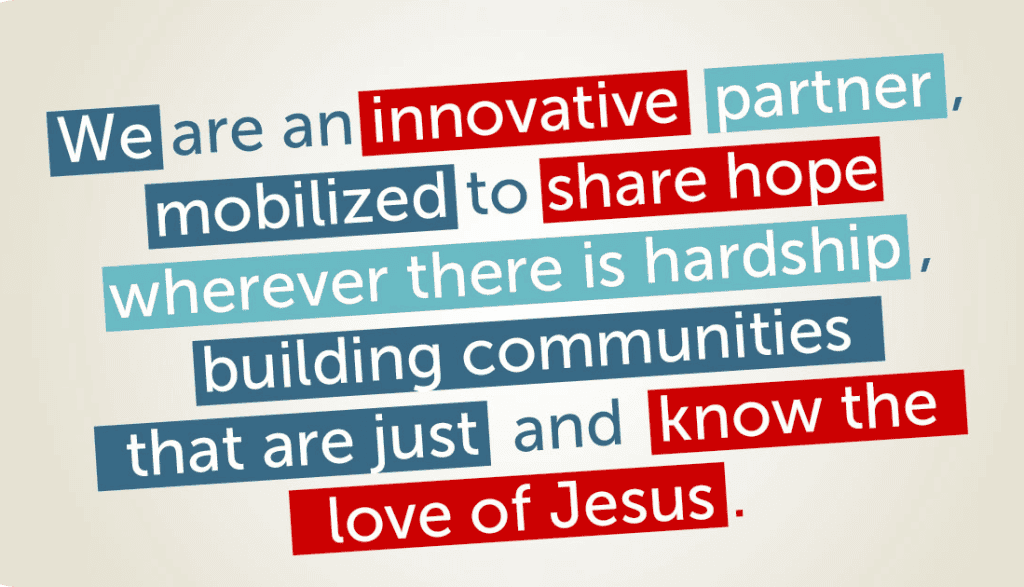 We are an innovative partner, mobilized to share hope wherever there is hardship, building communities that are just and know the love of Jesus.